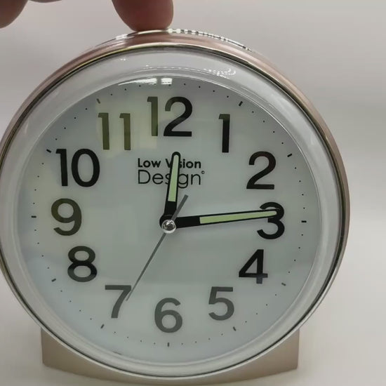 Stay on schedule with this easy-to-use talking alarm clock, designed especially for people who are blind or visually impaired. Featuring large, high-contrast black numbers on a bright white face, this clock offers exceptional readability. The glow-in-the-dark hour and minute hands ensure visibility even in dim lighting, making it ideal for bedside tables or living spaces.